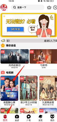 1、打开软件,点击底端的【首页】选项,选择需要下载的电视剧、电影。