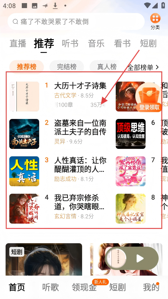 1、在首页推荐榜里,挑选感兴趣的内容,开启阅读吧。
