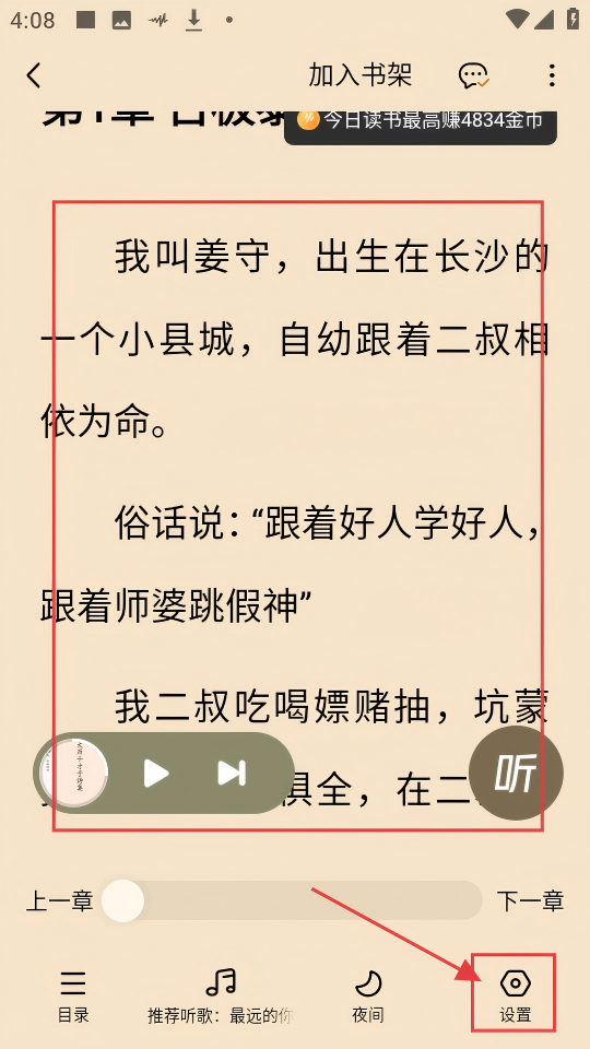 3、在电子书阅读页面,点击右下角【设置】按钮,就能展开阅读设置选项,去调整喜欢的阅读模式吧。