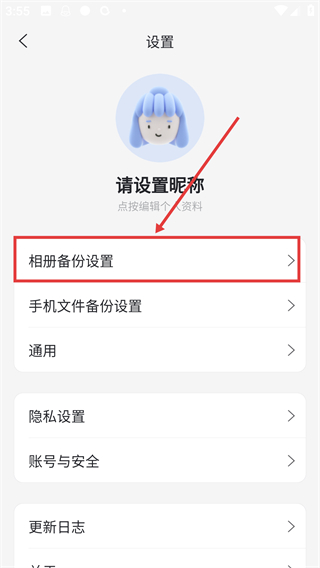 3、在设置页选择【相册备份设置】选项,就能进入相册自动备份的配置页面啦。
