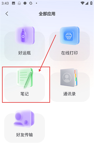2、进入全部应用页后,选择【笔记】选项,就能进入笔记功能的主界面哦。
