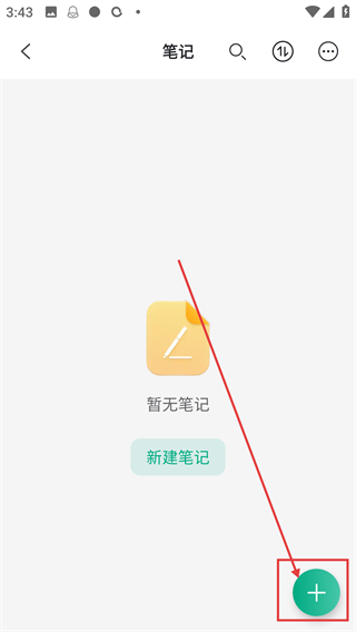 3、在笔记主界面,点击右下角的【+】按钮,就能触发新建笔记的操作流程啦。