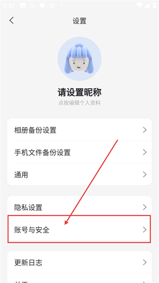 2、进入设置页后,点【账号与安全】选项能进入对应页面,后续可管理账号的安全相关功能哦。