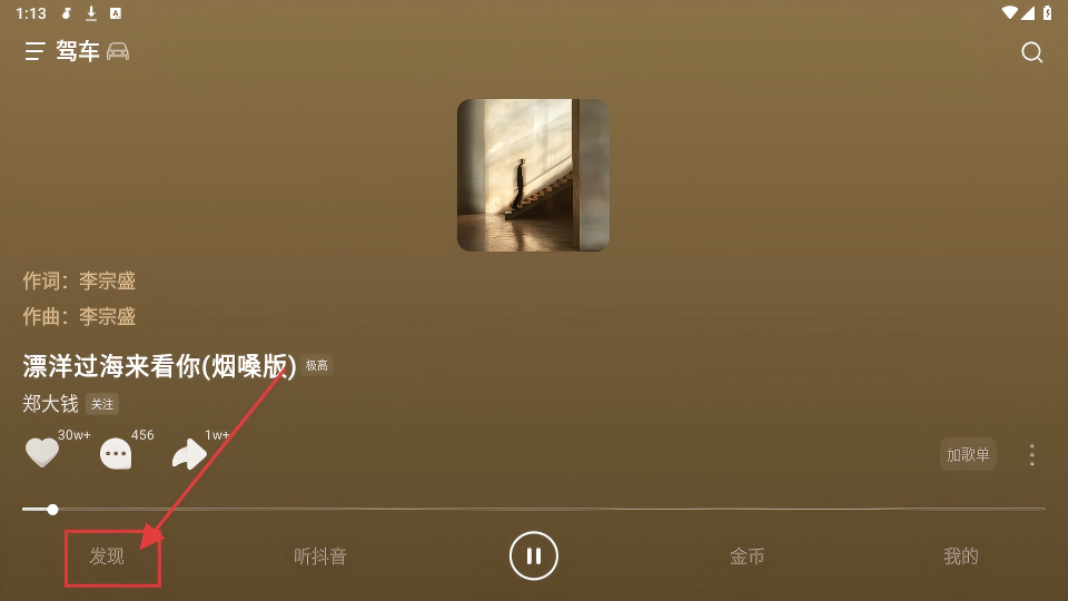 1、在APP播放歌曲页面,点击底部【发现】,能进入发现页,探索更多音乐内容呢。