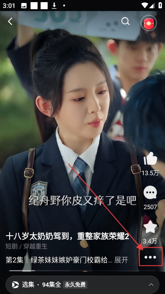 2、看短剧时,若想调整播放相关设置,点击右侧三个点图标,就能打开设置菜单。