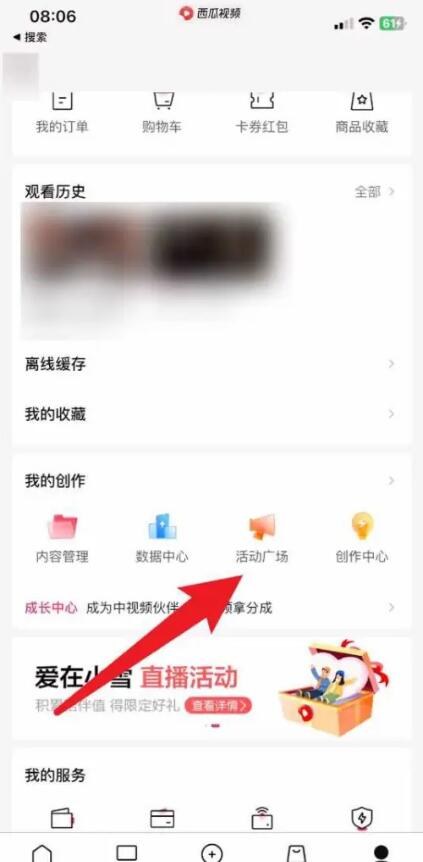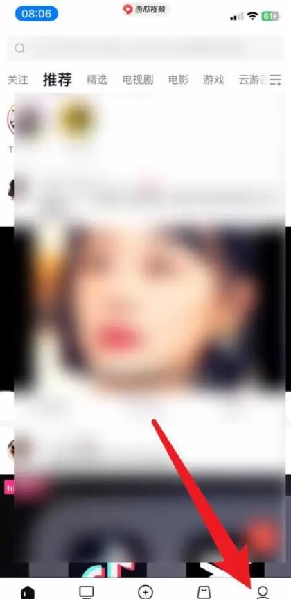 1、打开西瓜视频软件界面, 点击右下角我的。