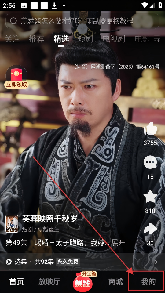 1、看视频时,若想管理个人相关,点击右下角【我的】,就能进入个人页面,超方便的。