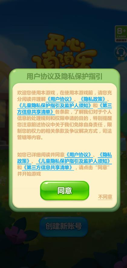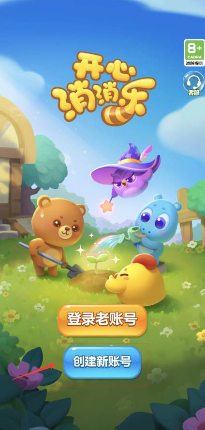 1、打开开心消消乐,如果之前有账号可以直接点击登录,如果没有就点击创建新账号。
