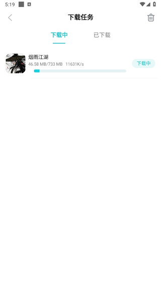 4、在主页面,点击右上角的下载按钮就可观看到下载进度。