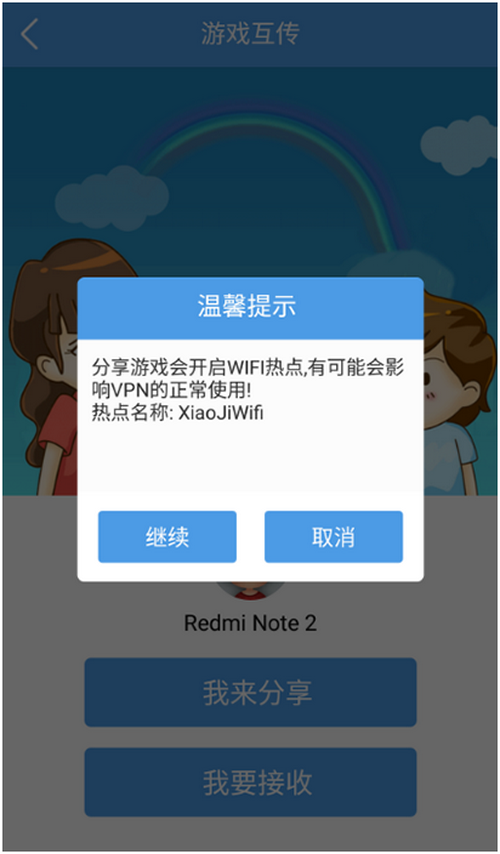 4、注意:对方也要点【我要接收】才能搜索到你分享的游戏。