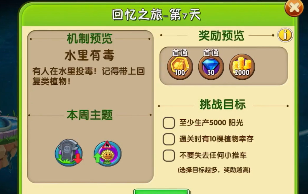 -「回忆之旅」模式新增限时机制浇水,植物需要不定时浇水,未能及时浇水的植物则会停止攻击。