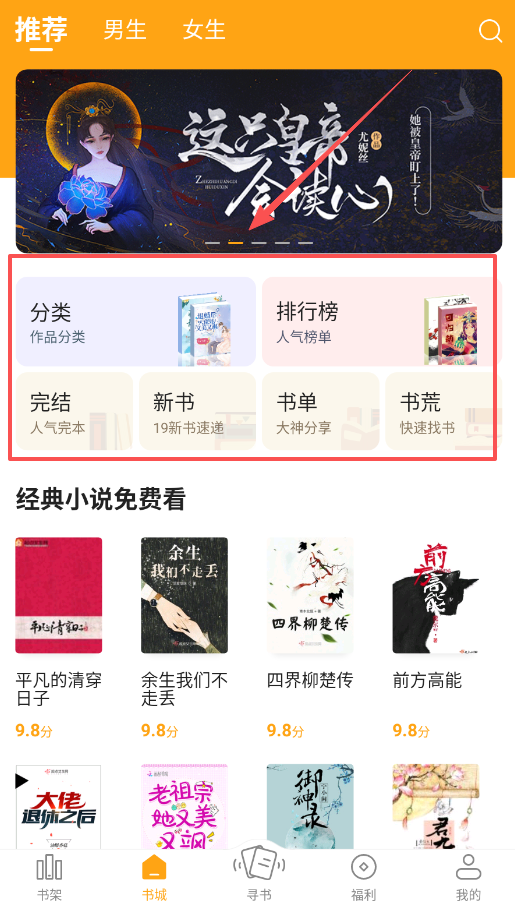 这里的书城都是有大量的小说给你,用户可以在里面找到很多小说哦。