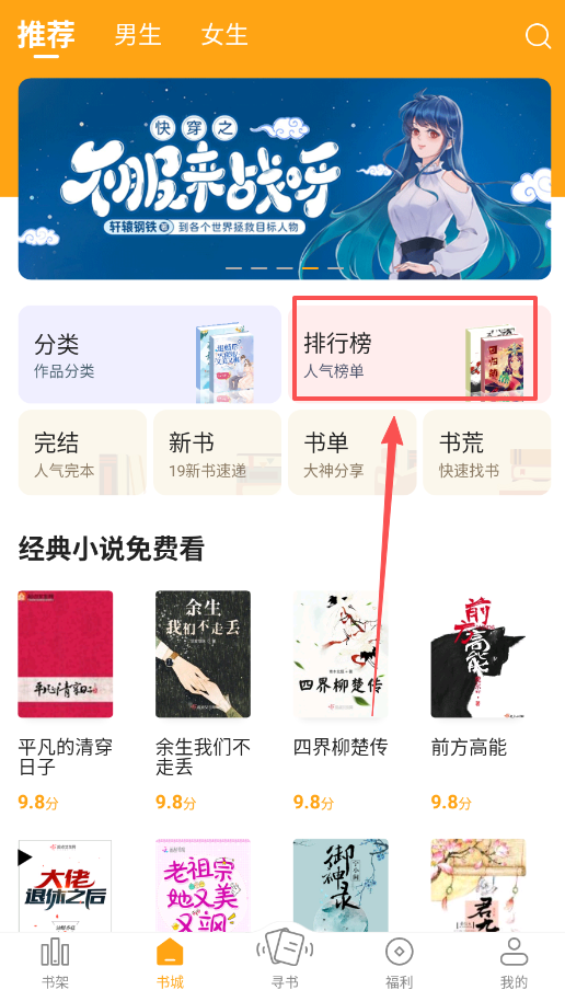 4、担心错过好书或更新吗。除了自己主动寻书,你可以多关注书城的热门榜单和编辑推荐。