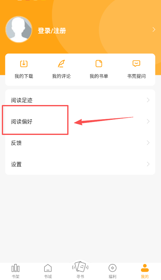 2、在开始寻书前,记得先去“我的—阅读偏好”里预先设置好大类,这样做的好处是,之后每次打开寻书页面。