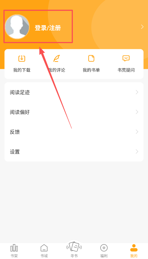 1、初次使用,请先点击底部导航的“我的”图标,进入后建议登录账号,这样你的书单和阅读记录就不会丢失了。