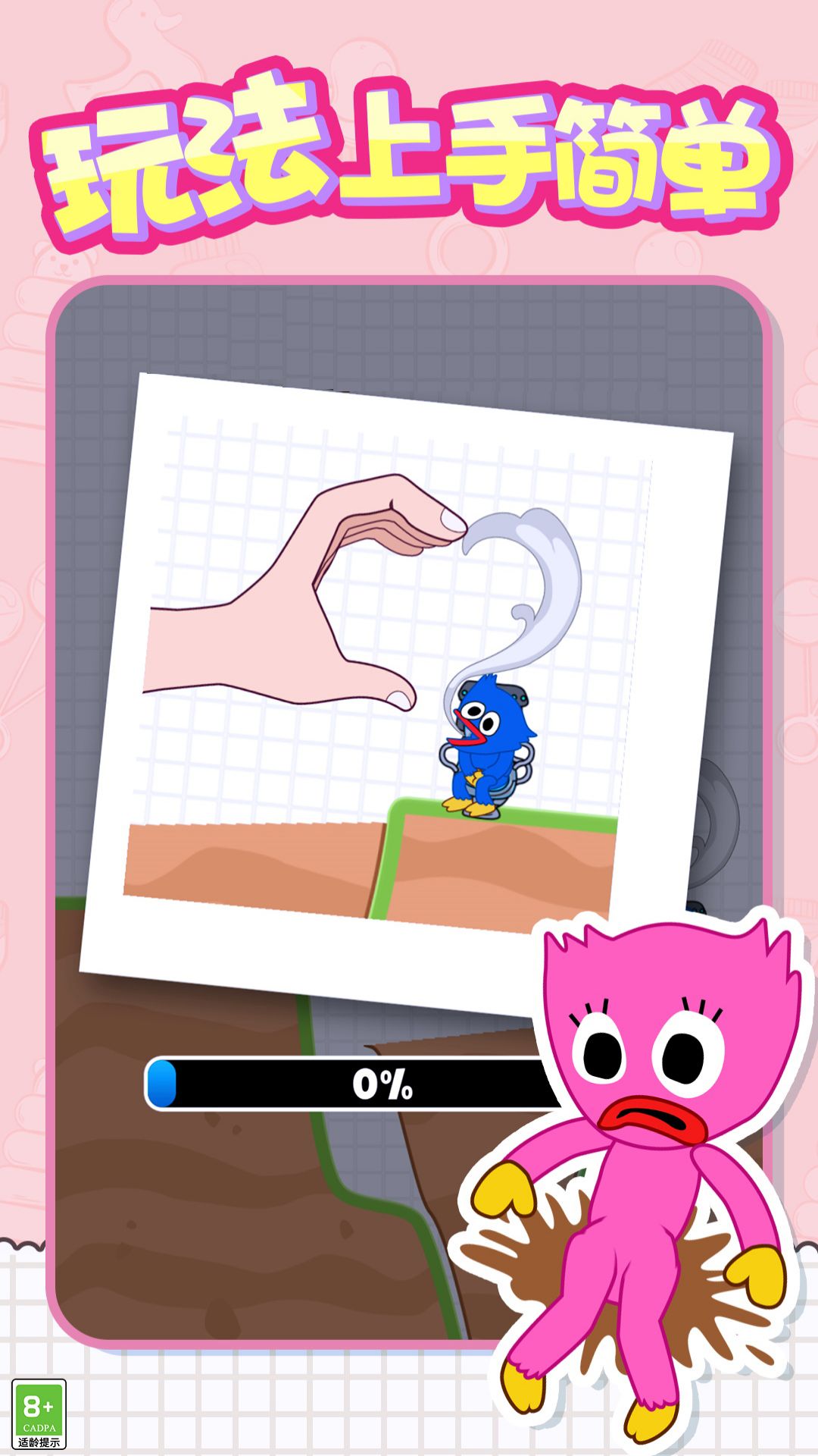 2、基本玩法是切割掉落的物体,填满下边的路径,这样玩家就可以自动移动到正确的目标位置。