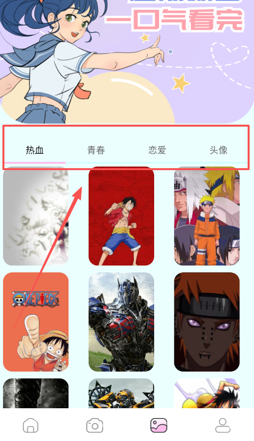 3、饭后想刷会儿视频,就点开一口气看完,根据心情选择热血或恋爱等频道,上下滑动挑选合辑,点击后就能沉浸式连续观看。
