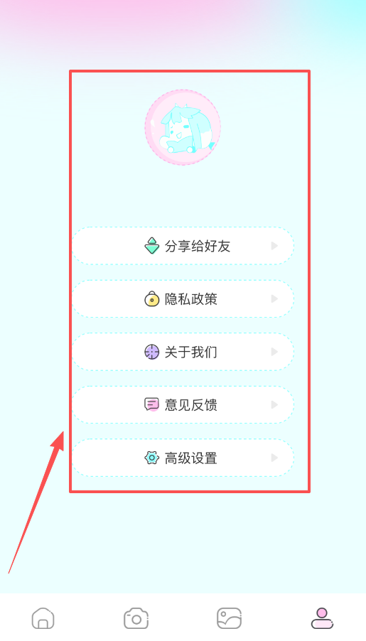 4、更多设置和帮助在个人中心里,点击分享给好友可以邀请朋友,查看隐私政策和关于我们了解软件详情,通过意见反馈提交建议。