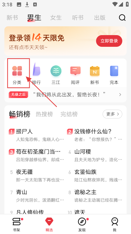 1.精选栏目:男生精选书友三刷栏目升级,淘书更丝滑