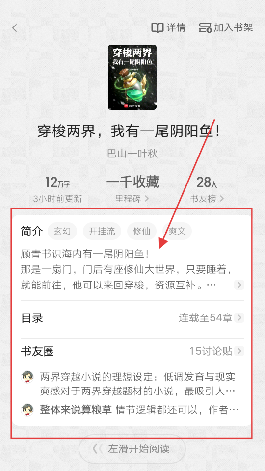 4、进入书籍详情页后,可查看书籍简介、目录等信息,还能看到书友圈的讨论,方便了解书籍情况。