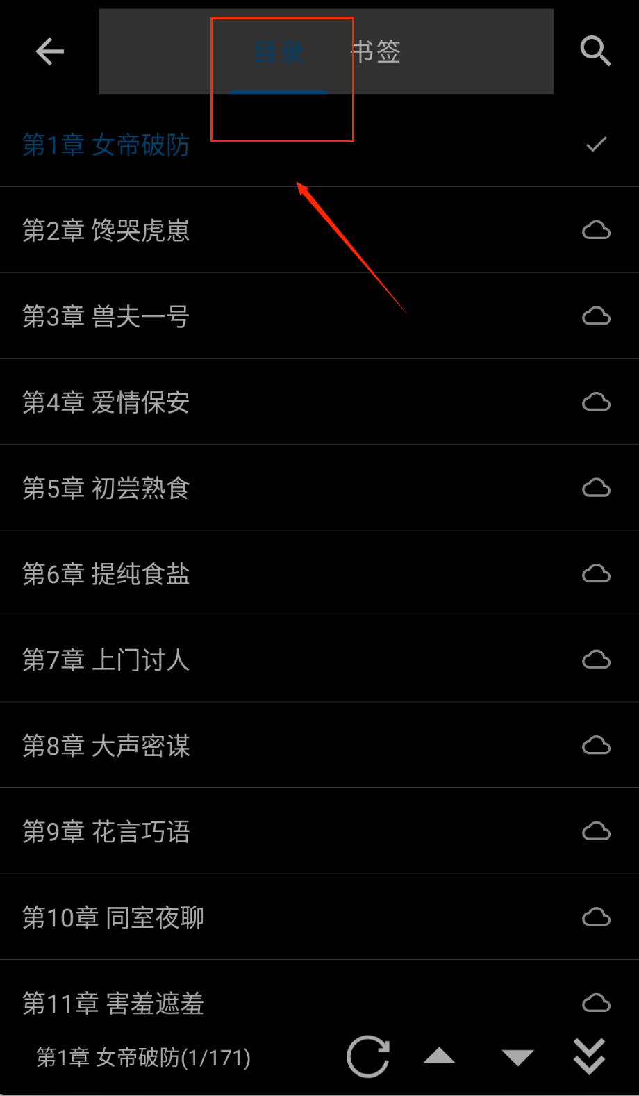 2、阅读时可以使用目录功能查看全书章节结构,遇到不喜欢的段落可以直接跳过,也可以通过搜索功能定位特定情节。