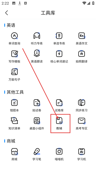 1、在工具库页面,点【教辅】选项能进入对应的资源页面,找到各学科的教辅资料来辅助学习哦。