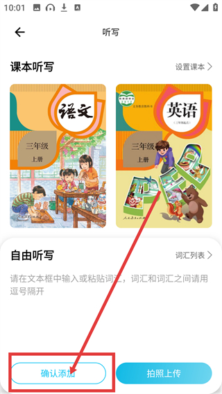 4、选定课本后点【确认添加】按钮,就能生成对应课本的听写内容,开始听写练习啦。