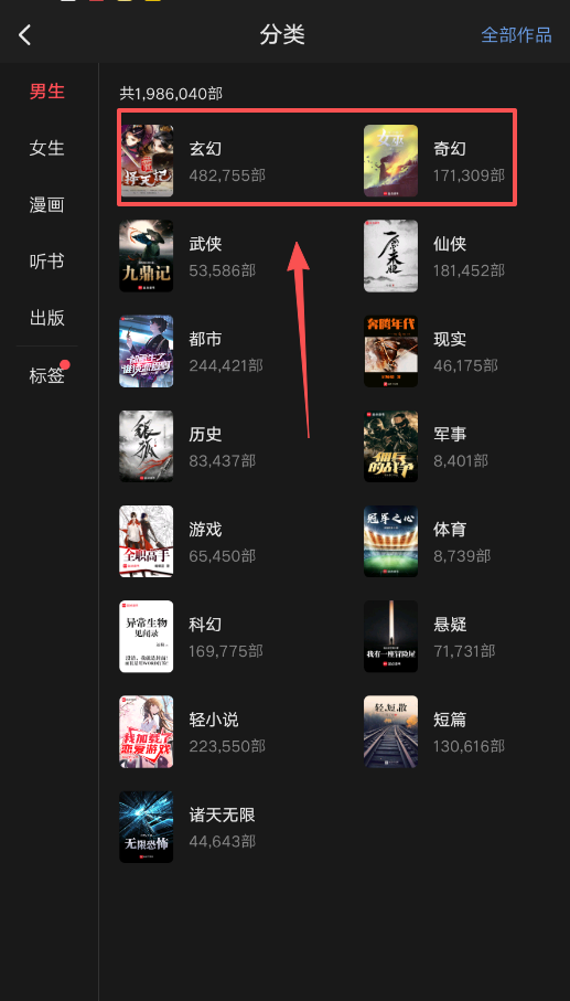 1、首次使用时,建议先浏览主页面顶部的分类标签,根据个人兴趣(如男生频道、科幻题材或听书模式)快速锁定书库区域。