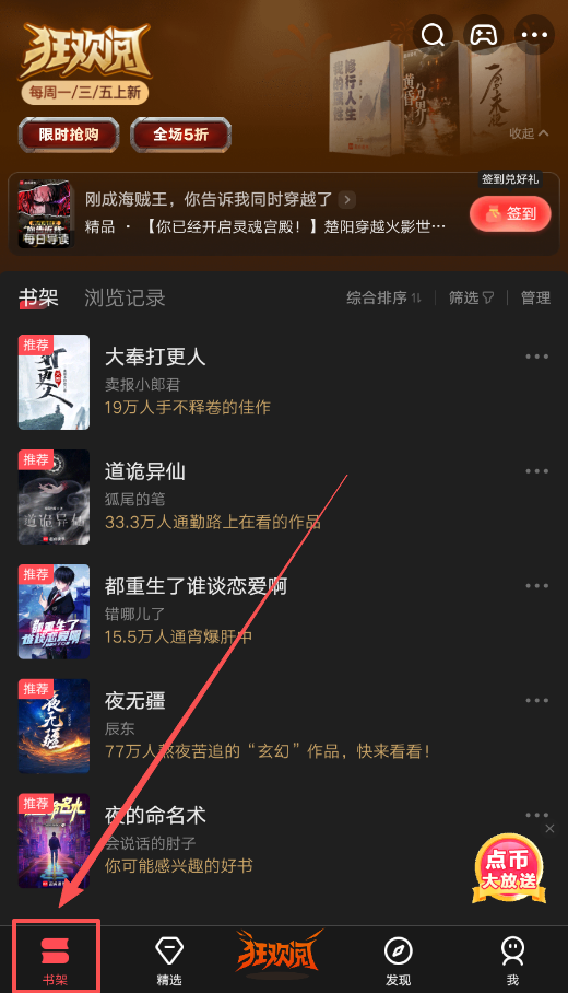 3、最后是签到领书,用户每日签到可以获取相应的书券,以此来换取更多的小说。