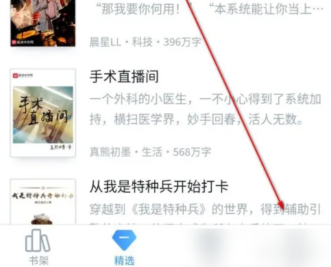 3、我们进入到书架,选择你要阅读的小说,点击打开。