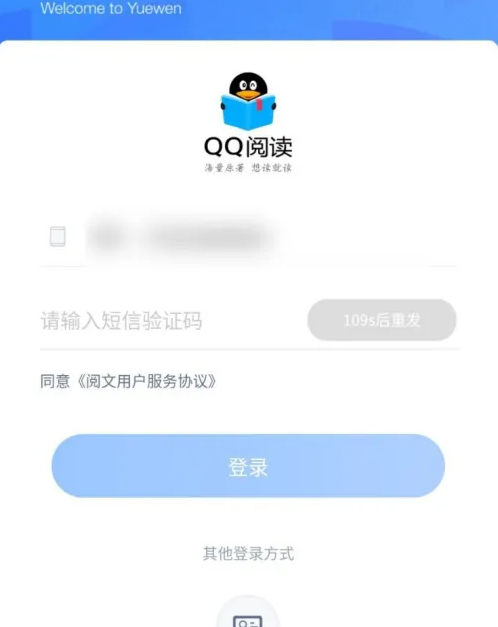 2、在登录界面输入手机号码,获取验证码之后。输入登录QQ阅读。