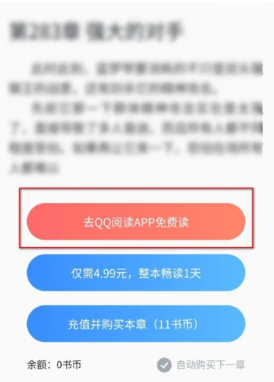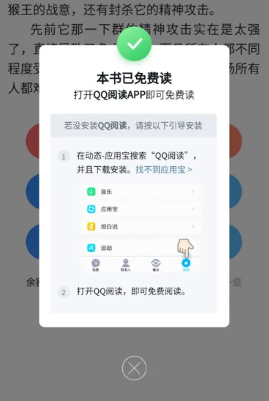 6、在这里可以看到,按照屏幕提示然后到QQ阅读内即可免费阅读。