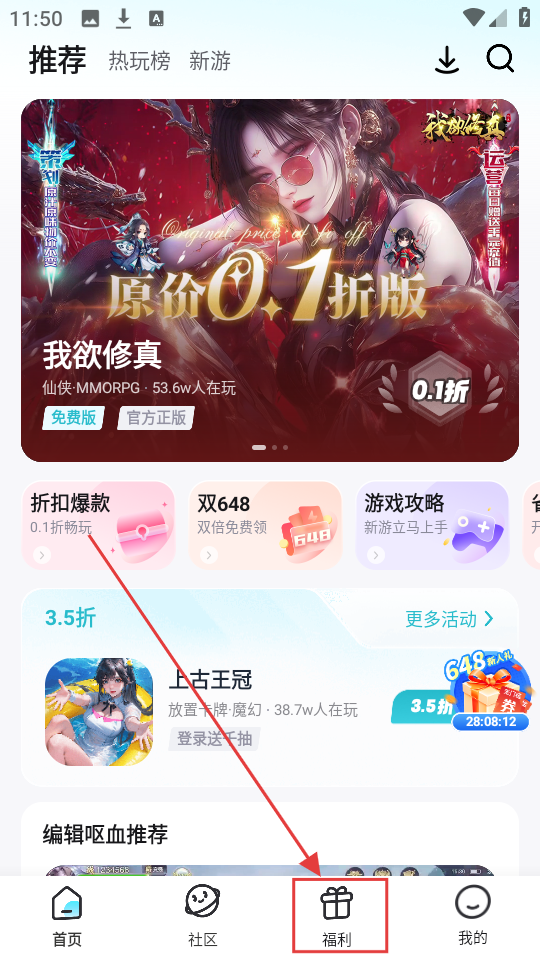 4、也可以进入分类页面或是福利中心,找到需要的游戏及礼包进行下载