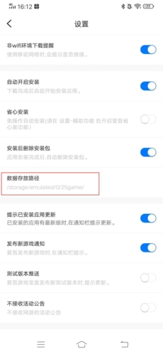 2、在设置中,我们就能看到“数据存放路径”,下方就是具体的存放位置了,不同的手机存放位置可能会有差异,小伙伴们按照自己看到的去找就行了。