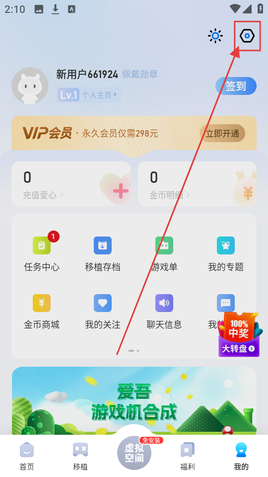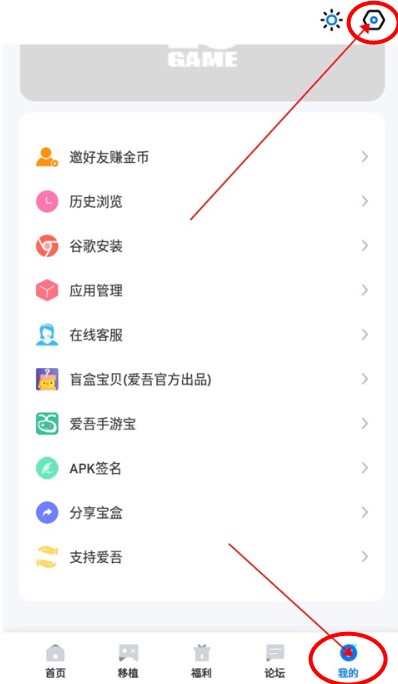 1、安装好软件后打开,点击我的页面,找到右上角的齿轮设置界面。