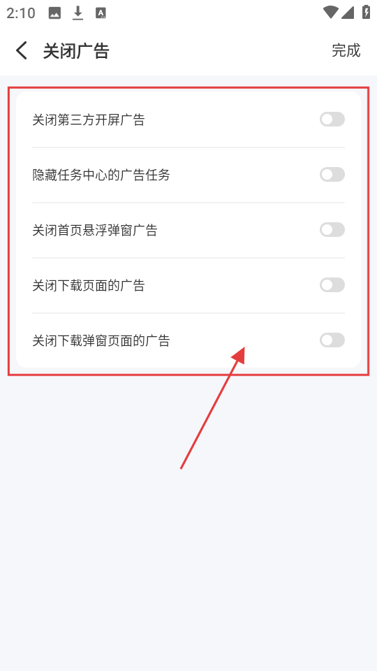 4、在关闭广告页面,可以选择关闭各类广告,比如第三方开屏广告等,超方便的呢。