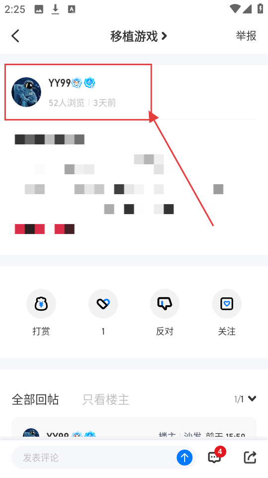 3、进入帖子后,点楼主头像进入个人主页哦,这样就能了解楼主更多信息啦。