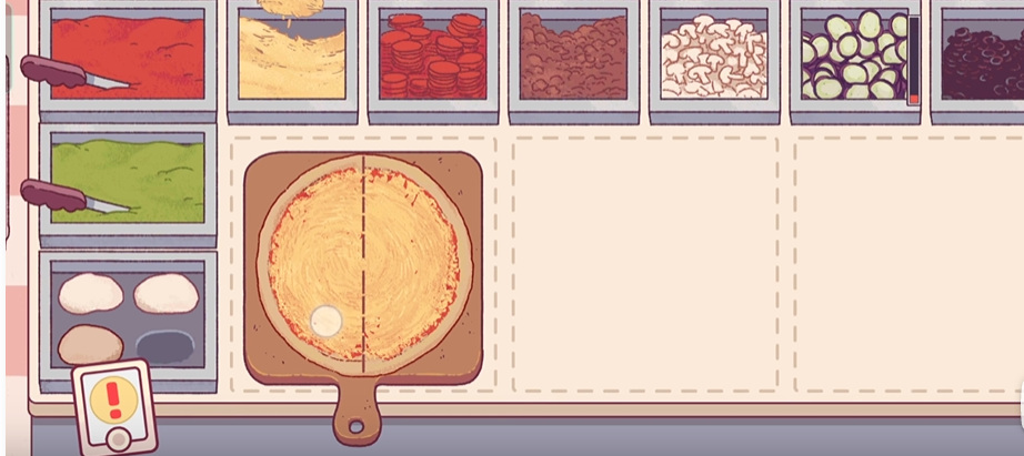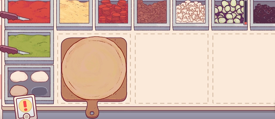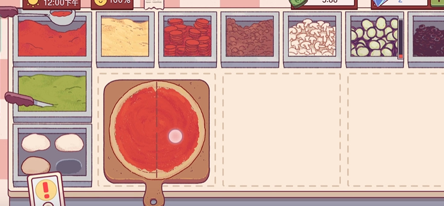 2、就是白饼胚加上除了玉米以外的所有料,早期茄子供应不稳定的时候,有茄子就要放,没有就可以不放(如果关卡开始的时候有茄子,做到最后用完了没有放也会退款)