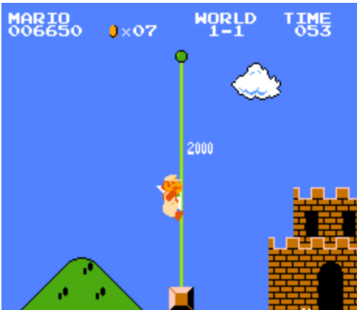 7、最后,我们抓到一面旗子,踩上去就算通过了。