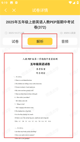 4、在试卷详情页切换到【解析】标签,就能查看试题的参考答案与解析,辅助理解题目解法啦。