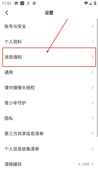 2、进入设置页后,选【消息通知】选项,可进入消息提醒配置页面,管理通知相关的功能啦。