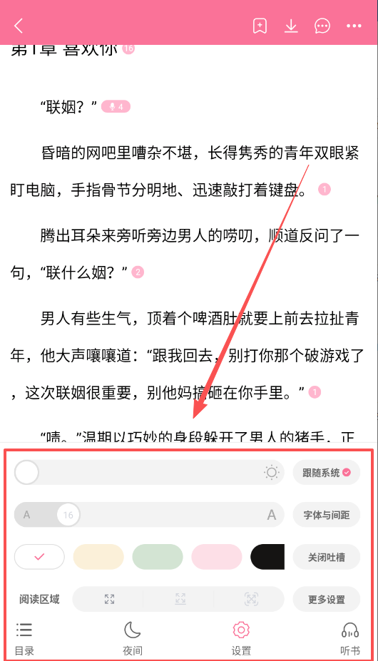 4、阅读设置选项允许用户自由调整,打造最符合个人喜好的阅读环境,让您畅享无阻阅读乐趣。
