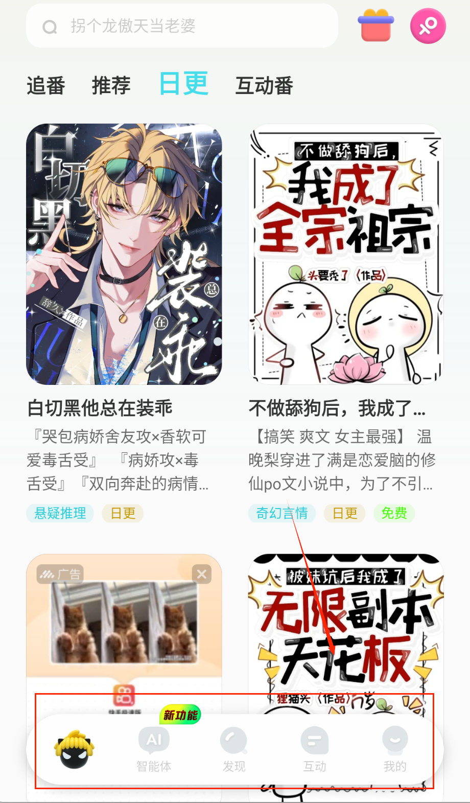 1、底部五个按钮,首页是推荐内容,智能体可以聊天互动,发现能找新作品,互动看好友动态,我的管个人设置,从首页开始逛最轻松啦。
