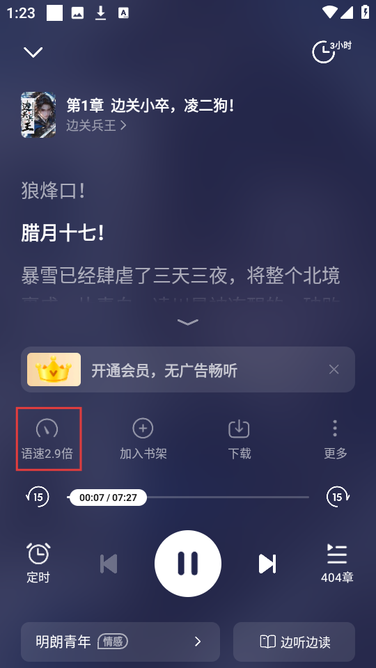 4、调整好语速后,就能以舒适的语速收听小说,提升听书体验,更好地沉浸在故事里啦。