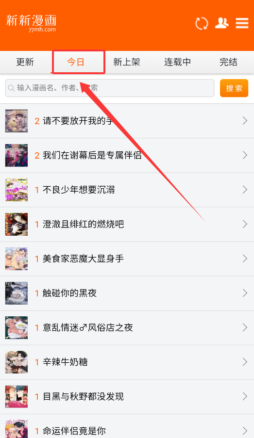 第一,网站首页的“今日”板块会列出当天更新的漫画,例如“只有你我死都不会喜欢第46话”就在这里。