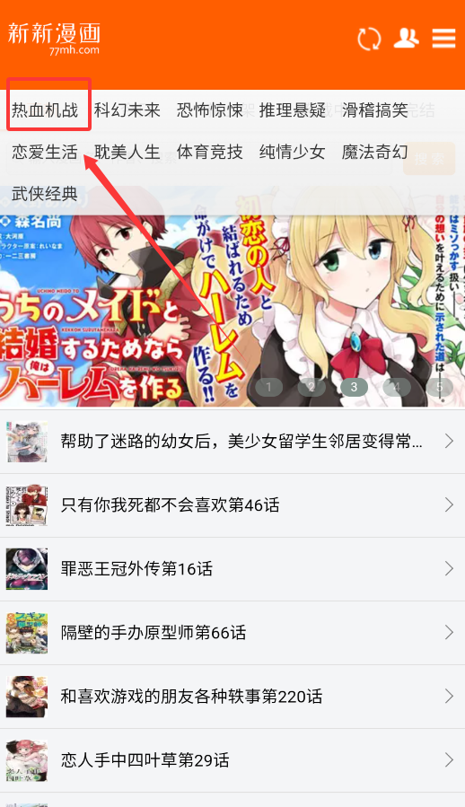 第一,在首页可以看到分类导航如热血机战、科幻未来、恋爱生活等,直接点击你感兴趣的类别就能浏览对应漫画。