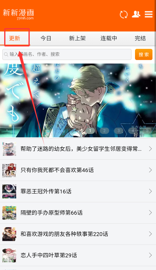 第二,如果想找特定漫画,可以使用顶部的搜索框,输入漫画名或作者名,点击搜索即可快速定位。