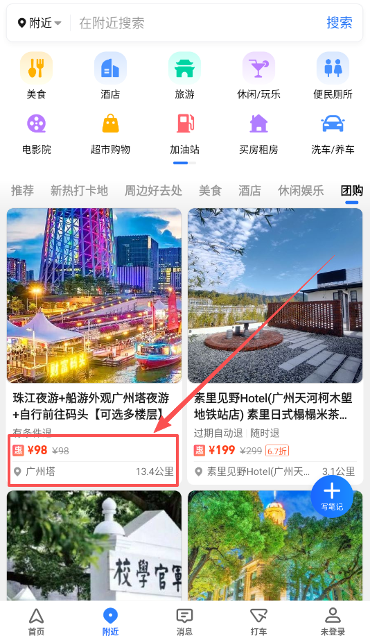4、留意附近页面里的推荐板块,那里常有新热打卡地和商家优惠券,比如限时团购或代金券,能省下不少钱呢。