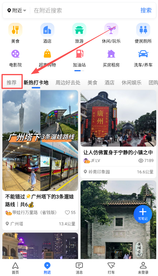 4、多留意附近页的新热打卡地推荐,那里会展示评分不错的特色店铺,比如本地私房菜,帮你快速决策找到心仪目的地。