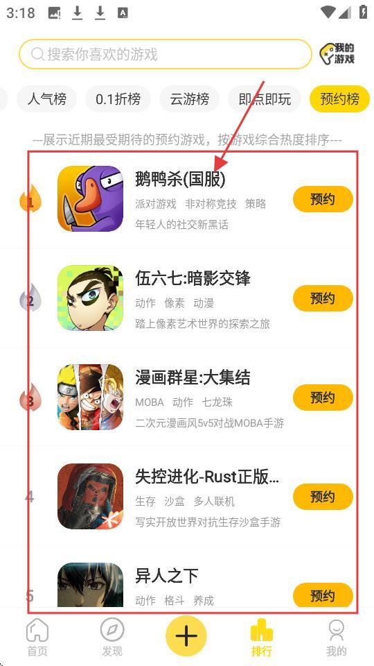 1、想了解热门预约游戏,就点击【预约榜】标签,这里能看到近期最受期待的预约游戏,超棒的。